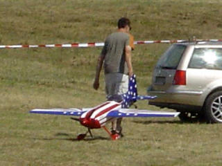 Ich mit meiner Extra 330 - leider riss der originale 3W-Dämpfer zum vierten mal ab und legte das Modell lahm! |