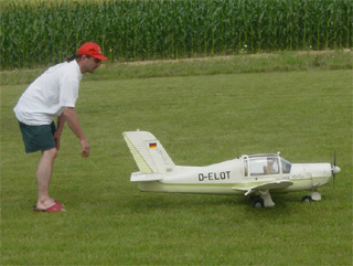 Heiko, vom Modell-Shop "Hobby-RC-Hangar" bot den Gästen die Möglichkeit, mal selbst an den Knüppeln zu rühren - das wurde natürlich gern angenommen! |