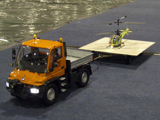 Hubi mit Beleuchtung wird von einem Fern- gesteuertem Unimog gezogen |