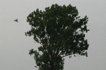 Der Einzige an diesem Tag, der unterhalb der Baumspitze um den Baum herumflog |