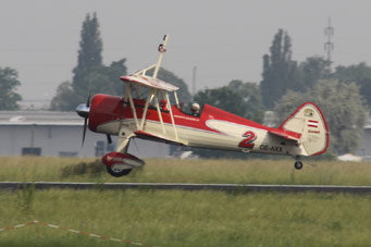 Ein "Wingwalker" steigt gerade aus |