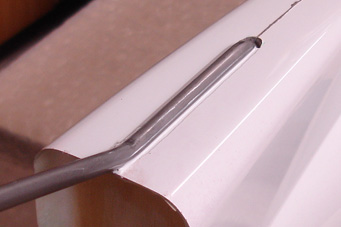 Als Scharnierachse verwende ich statt Messing ein Edelstahlrohr. Das hält die Ruder für lange Zeit spiel- und klapperfrei |