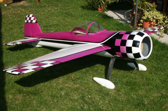 Die Sonne scheint: erstmal im Garten aufgebaut :-) So kommt der Flieger "aus der Kiste" - mit einem Gewicht von 8.980 g |