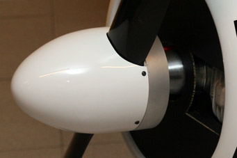 Der Motordom kommt trotz Höhenunterschied am Holzspant leicht zum Anliegen. Das Schnarren kann durch dünnes Filzband verhindert werden. |